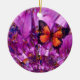 Eine einzigartige Blume im hypnotischen Sinne mit einem orangefarbenen Schmetterling, der herumfliegt.