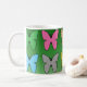 Farbige Schmetterlingsreihen auf grüner Tasse
