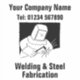 Vinyl Aufkleber für einen Schwarzschmied, Welder oder Stahlarbeiter. Geben Sie Ihren Firmennamen und Ihre Nummer etc. ein.