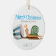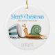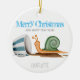 Eine Illustration einer Schnecke und einer gestreiften Tasse mit dem Text "Frohe Weihnachten". Passen Sie den Namen an.