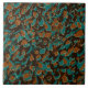 Keramik Fliesen mit Leopard-Stil gepunktete Muster. Abstrakte dunkelblaue, türkisfarbene und braune Pinselstriche und Goldkurven. Abstrakter gepunkteter Hintergrund mit Diamanten. Luxuriöser Hintergrund. Schmuck- und Blumensammlung.