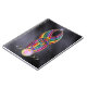 Ein leuchtend farbiger fließender abstrakter, goldfarbener und mit Diamanten und Perlen bestückter gerahmter Fluss. Glatzende, leuchtende Strömungen roter, gelber, grüner, blauer, lila und rosa Kurve glatt, knusprig von einer großen Perle bis zur Spitze, am Ende durch eine Sternexplosion betont. Dieses Regenbogendesign wird vor einem Hintergrund aus schwarzer Seide gelegt.