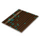 Keramik-Fliesen mit Schmuck und blumengestreiften nahtlosen Mustern. Abstrakte blaue und türkisfarbene Blume und Goldstreifen mit Diamanten auf dunkelbraunen gestreiften Keramiken. Schmuck- und Blumensammlung.