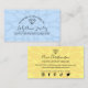 © 2021 Socialite Designs Inc. Dieses zweifarbige blaue und gelbe Visitenkartendesign beinhaltet einen floralen Burst-Hintergrund, ein Diamant-Design-Element (kann gelöscht werden und Ihr eigenes Logo hinzugefügt werden) und einen gebogenen Text, um das Auge zu fassen. Eine elegante Visitenkarte, die für viele Arten von Unternehmen oder selbstständige Anstellung verwendet werden kann.