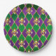 Schmuck, Hintergrund auf Mardi Gras von lila und grünen Rhombus, verzierte goldene Lilien.