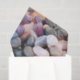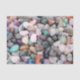 Sammlung von bunten, halbwertvollen Steinen und Edelsteinen auf einzigartigem Tissue Papier.