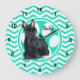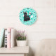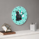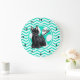 Schnauzer; Aqua-grünes Zickzack Große Wanduhr