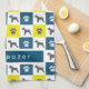 Schnauzer Dog & Paw Yellow & Blue Grid Teetuch Geschirrtuch