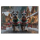 This festive design captures the joyful spirit of the holiday season, featuring an adorable dogs.Nestled in a winter wonderland, complete with a decorated Christmas tree, and beautifully wrapped presents. Snowflakes gently fall, adding a magical touch to the scene, while the vibrant colors of the holiday decorations create a warm and cheerful atmosphere.
