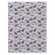 Niedliche Schnauzer-Hunde in Schwarz, Salz und Pfeffer und Schwarz- und Silbermäntel sitzen, stehen und rollen mit verstreuten Hundeknochen und Pfotendrucken auf leicht lila Hintergrund.