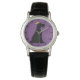 Uhr, Klassische Damenuhr mit schwarzen Lederarmband