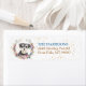 Die links Seite dieser Rücksendeadressen-Aufkleber zeigt einen Blume-Kranz in den Farben Weich Rosa, Blau, Gold, Grün und Creme. Im Zentrum steht ein schönes Aquarellbild eines Schnauzer Hundes. Die winzigen goldenen Konfetti geben dem Hintergrund ein subtiles Funkeln. Ihr eigener Text ist rechts in blau und braun Gold.