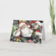 Diese Weihnachtskarte kennzeichnet eine ursprüngliche Aquarellmalerei von einer Sankt mit Standardschnauzerwelpen.