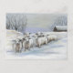 Diese Postkarte zeigt eine Reproduktion meiner ursprünglichen pastellfarbenen Gemälde von Schafen im Schnee.