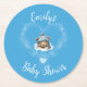 Schnee begeistert Blue Teddy Bear Baby Dusche Runder Pappuntersetzer