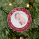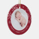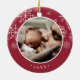Elegante Foto-Ornamente erinnern an die erste Weihnachtszeit Ihres kleinen Babys mit einem wertvollen Foto auf jeder Seite, gerahmt von weißen Schneeflocken auf Cranberry Rot. Personalisieren Sie mit einer eigenen Bildunterschrift auf jeder Seite; vorn mit "[Name's] first Christmas" und hinten mit dem Jahr.