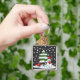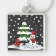 Schnee fällt auf Kardinal, Schneemann und Pine Tre Schlüsselanhänger