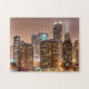 Schnee fällt über Skyline am Abend in Chicago Puzzle