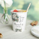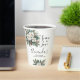 Schnee In der Liebe Winter Brautparty Kaffeetassen mit wintergrünen Blätter, weißen Blumen und ein wenig Schnee, um das Winterthema einfangen.