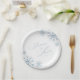 Feiern Sie Liebe mit unserem Schnee in Liebe Brautparty Papier Teller mit eleganten Aquarellschneeflocken in weichem staubblauen. Die moderne Kalligraphie-Schrift und die silbernen Glitzer-Akzente fügen eine schicke, festliche Touch hinzu, die sich perfekt für ein winterliches Wunderland-Brautparty eignet.