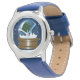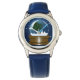Kinderuhr aus Edelstahl mit blauem Lederarmband