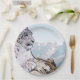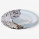 Ein stolzer Schneeleopard sitzt umrissen gegen seinen Gebirgslebensraum.