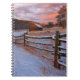 Dieses Foto kennzeichnet eine Schnee bedeckte rustikale Scheune vor einem schönen Sonnenuntergang auf einer Colorado-Ranch.