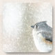 Fotografie eines büscheligen Titmouse in einem Schneesturm