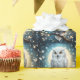 Vor einem Vollmond auf einer Baumzweigung abgebildet ist eine weiße Schneeschale mit Funkeln.
