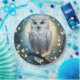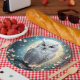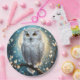 Vor einem Vollmond auf einer Baumzweigung abgebildet ist eine weiße Schneeschale mit Funkeln.