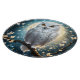 Vor einem Vollmond auf einer Baumzweigung abgebildet ist eine weiße Schneeschale mit Funkeln.