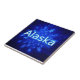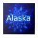 Ein winterliches Thema mit einem Schwarm von Schneeflocken aus blauem Fraktal. Der Text "Alaska" erscheint in leuchtendem Blau und Weiß.