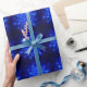Ein Schwarm blauen Fraktals Schneeflocken. Das wäre eine tolle Karte für jeden Winterurlaub oder jede Winterveranstaltung.