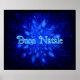 Ein winterliches Thema mit einem Schwarm von Schneeflocken aus blauem Fraktal. Der Text "Buon Natale" erscheint in blau und weiß.