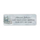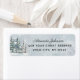 Eine Winterlandschaft in sanften Aquarelltönen in Blau, Grün, Grau und Weiß stellt eine Gruppe von Tannenbäumen im Schnee dar und verleiht Ihren Urlaubskarten und saisonalen Mailings einen ruhigen Akzent. Personalisieren Sie diese Rücksendeadresse mit Ihrem Namen und Ihrer Adresse.