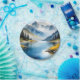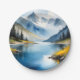 Schneebedeckte Berge und See Pappteller