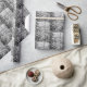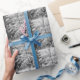Lassen Sie Ihre Geschenke auffallen, indem Sie Papier mit einem schneebedeckten Ahornbaum verpacken. Das Schnee-Foto wiederholt sich in einem Halbtropfenmuster. Die schönsten Winterszenen treten oft bei Schneestürmen auf, wie in diesem original Schwarz-Weiß-Foto. Die von Schnee gesäumten Äste eines großen, kargen Ahornbaumes reichen über das Bild. Klicken Sie auf den Link "Rocklawn Arts", um das Foto "Ahornbaum im Schnee" auf anderen Gegenständen zu sehen. Digitales, schwarz-weißes Foto. Copyright ©Claire E. Skinner. Alle Rechte vorbehalten.