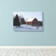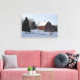 Schneebedeckter Winterstall und Silo Leinwanddruck