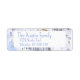 Ein niedliches und schön detailliertes, wasserfarbenes Bergskidorf mit schneebedeckten Bergen, Chalets und Ladenbesitzern, Skifahrern, Gebäude-Schneemännern, Dorfbewohnern Ansammlung, Kinder spielen, Hunde bellen und Weihnachtsbrunnen in diesem illustrierten Winterurlaubsmuster kehren Adresse-Label.