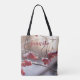 Schneekabine, Kiefernbuss, Roter Bogen, Beeren Familie Tote Tag - Die schneebedeckte Weihnachtskiefer- und Briefkasten-Seite hat den Namen der Familie mit dem Datum, völlig anpassbar. Auf der anderen Seite des Totensacks stehen rote Beeren, grüne Blätter, die von einem Baum hängen und den Namen des Familienmitglieds im Inneren hervorheben. Das wäre phantastisch für ein Familienweihnachtsfest, wo jeder eine Tasche mit eigenem Namen bekommt.