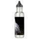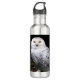 Tierporträtfotografie der majestätischen, schneebedeckten Eule, die auf einem Zweig stehend ist.