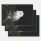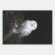 Tierporträtfotografie der majestätischen, schneebedeckten Eule, die auf einem Zweig stehend ist.