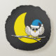 Schneeeule in der Winternacht des Neumonds Rundes Kissen