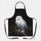 Tierporträtfotografie der majestätischen, schneebedeckten Eule, die auf einem Zweig stehend ist.