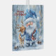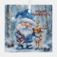 Schneefall & Scarlet Threads Glasdekoration In einem schneebedeckten Wald voller Nadelkronen und fallender Flocken, ein fröhlicher Gnome in einem blauen Winteroutfit teilt einen zarten Moment mit einem kleinen Rentier. Der Gnom hat einen gemusterten Schal in Rot und Weiß, der den festlichen Geist widerspiegelt, der durch die Szene tanzt. Ihr liebevoller Blick und der sanfte Schneefall schaffen ein Gefühl von Frieden, Verbundenheit und Urlaubsmagie.