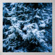 Schneefall im Wald. Schneeflocken in der Luft. Schneebedeckter Weihnachtsbaum. Blau und Grün, Winterstimmung. Frohe Weihnachten und viel Glück für Sie und Ihr neues Jahr!