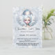 Ein wunderschönes und magisches leuchtendes Portal hat einen strahlenden Stern im Inneren und ist von zarten weißen Schneeflocken gerahmt. Eine angelsächsische Feen-Prinzessin mit großem blauem Auge und langem weißem Haar ist vor dem Portal stehend. Ihre ätherisch-weißen Flügel sind weit offen. Auch sie ist gerahmt von weich fallendem Schnee, der vor einem duskischen, blassblauen Hintergrund in der Luft tanzt. Diese zum Download bereitgestellte und druckbare Einladung ist ideal für ein Märchen; Fee; Winterwunderland, Quinceanera, 16. mythischer Geburtstag oder Hochzeitsfeier. Anpassen Sie einfach die Vorlagen an Ihren Anzug.