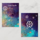 Elegante Schneeflocken Aquarellmalerei in Aquablau, Turquase, aquamarin, violett, weiß, lila, gelb mit goldfarbener und silberner Folie.