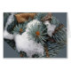 Schnee und rostige Blätter auf einem Tannenarm