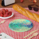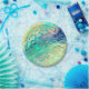 Schneeflocke aus Hartglas, farbig aquamarin, rosa Pappteller